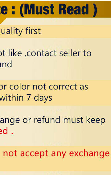 1.Replacement is accepted within 7days,pls contatc me at first. 2.To avoid delivery lost,return should be arranged by register airmail, the shipping fee and tax should be paid by the buyer.
