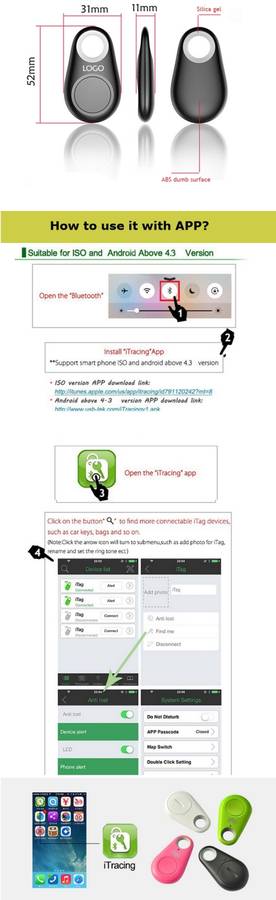 5. Suitable for: Pets, Wallet, Car, Kid, Bags,Suitcase or other belongings.