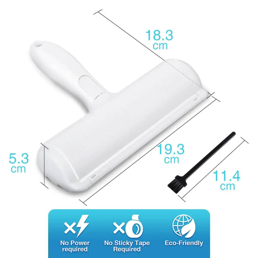 | Pet Hair Remover Roller for Pet Hair, Reusable Dog Cat Hair Remover Roller, Easy to Clean Dogs Cats and Other Pet Hairs from Furniture, Sofa, Bedding and Comforters Couch ? PET HAIR REMOVER ROLLER Solid design as an ABS body with PP roller and nylon etiquette brush.Pet hair remover roller refill static created by short, rapidly back and forth strokes with the roller to capture all pet hair and lint into the dust receptacle. WITH SELF-CLEANING BASE Reusable pet hair remover for furniture is easy to clean. Holding the fur roller, rolling back and forth on the surface, all the hair is collected in the dustbin.Press the button to remove all pet hair from the bin. Then you can use it again so you do not need to tear off the lint roller paper. LIGHTWEIGHT AND DURABLE Durable nylon and ABS plastic ensure the comfort and durability of the pet hair removal roller.Pet hair remover roller small and light shape, it is more convenient for pet owners to have a Pet Hair Remover at home or even bring it out when travelling with pets. SIMPLE & REUSABLE NO power source required. With this reusable pet hair lint roller, no longer to waste money on refills nor batteries.Non-slip rubber handle with ergonomic design for comfortable grip. WIDELY USE TOOL FOR PETS OWNER Reusable pet hair remover can be used to collect pet hair on any furniture surface: cotton linen wool, sofas, couches, bedding, carpets, blankets or event car seats. Pet fur and lint remover will create a hair-less house for you. Use a moist cloth to wipe after each use, should not wash the brush surface directly with water. ? Product Description: Product name: Pet Hair Remover Roller Product material: Durable nylon and ABS plastic Color: White ? Product contains: 1x Pet Hair Remover Roller 1x Brush |