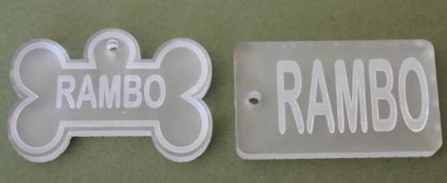 HAVE A NAME TAG ENGRAVED WITH YOUR PETS NAME AND YOUR CONTACT DETAILS IN EITHER PERSPEX, MDF or LEATHER. Tags are sized according to the breed of dog. I do not make metal ones as metal rusts.