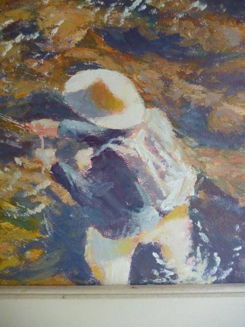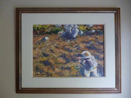 Painting is 48 cm x 34 cm. Frame is 64 cm x 58 cm.