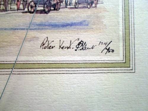 A very detailed limited edition print from this renowned artist. The print measures 50cm x 39cm and the frame measures 74cm x 62cm. Please note the print does have some dirt, the frame is scuffed and the glass is cracked.