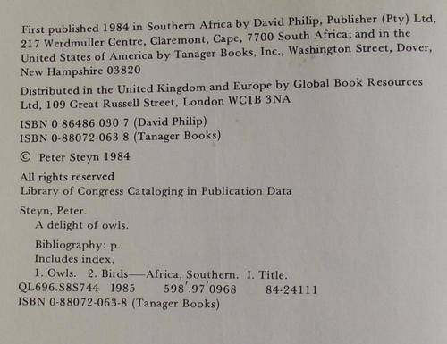 Peter Steyn: A DELIGHT OF OWLS: AFRICAN OWLS OBSERVED