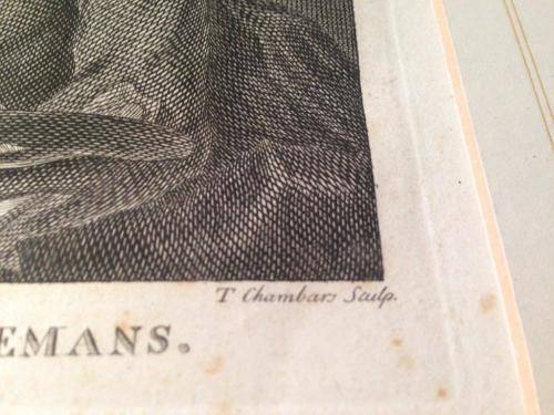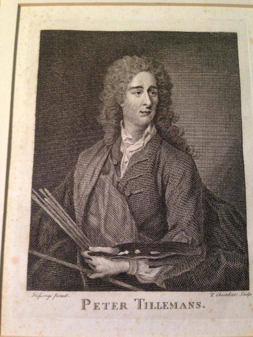 PETER TILLEMANS WAS BORN IN ANTWERP IN 1684, THE SON OF A DIAMOND CUTTER. FLEMISH PAINTER, BEST KNOWN FOR HIS WORKS ON SPORTING AND TOPOGRAPHICAL SUBJECTS. ALONGSIDE JOHN WOOTTON AND JAMES SEYMOUR, HE WAS ONE OF THE FOUNDERS OF THE ENGLISH SCHOOL OF SPORTING PAINTING.FROM 1708 UNTIL HIS DEATH HE LIVED AND WORKED IN ENGLAND. ENGRAVED BY THOMAS CHAMBARS (1724-89), ROM FIRST EDITION OF THE " ANECDOTES OF PAINTING GOOD BORDERS SMALL DETAILED ENGRAVING BY HORACE WALPOLE PRINTED AT THE STRAWBERRY HILL PRESS IN PRE 1762,