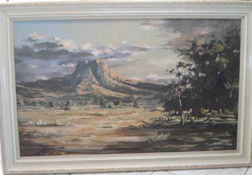 A stunning landscape from a very respected artists. This painting is very dramatic on a massive scale! It measures a very large 145cm x 87cm and the frame measures 167cm x 109cm. At this price for this artist it is a giveaway!! Bid now!!