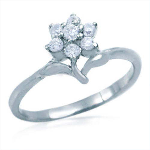 Petite 0.25ctw White CZ 925 Sterling Silver Flower Ring - Size 6 / M