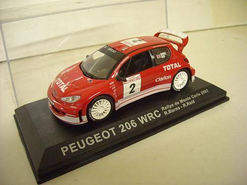 Peugeot 206 WRC. 1/43 Rally die cast model car. As new in display case. Ralllye de Monte Carlo 2003.