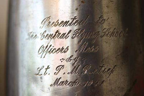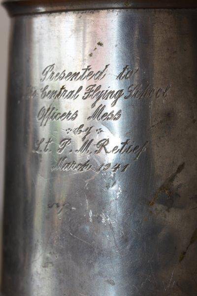 WOW!!! A STUNNING (AND I AM SURE VERY RARE & VALUABLE) "THE CENTRAL FLYING SCHOOL" PEWTER BEER MUG PRESENTED BY Lt. P.M. RETIEF TO THE OFFICERS MESS IN MARCH 1941!!! THE CENTRAL FLYING SCHOOL IS A ROYAL NEW ZEALAND AIR FORCE UNIT WHICH IS RESPONSIBLE FOR TRAINING FLIGHT INSTRUCTORS. IT WAS ESTABLISHED AT THE START OF WORLD WAR 2 AS A FLYING INSTRUCTORS SCHOOL AND ASSUMED IT'S CURRENT NAME IN 1941. PLEASE READ THE LINK FOR A LOT MORE INTERESTING INFO. THIS PIECE IS HIGHLY COLLECTIBLE AND VERY VERY INTERESTING!!! A FANTASTIC COLLECTOR PIECE!!!