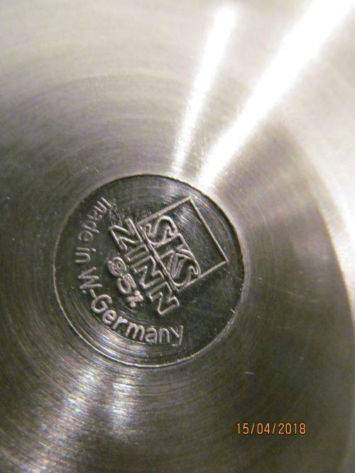 STAMPS /MARKS : TANKARD IS STAMPED WITH MANUFACTURERS STAMP - "SKS ZINN 95% MADE IN W-GERMANY"