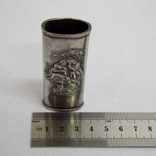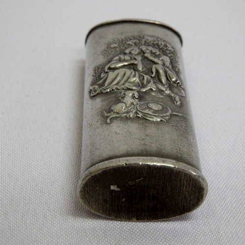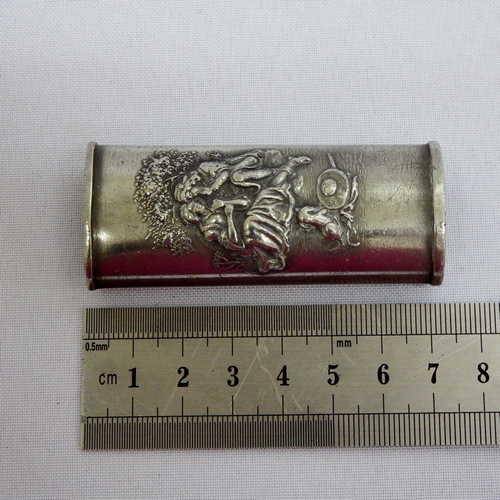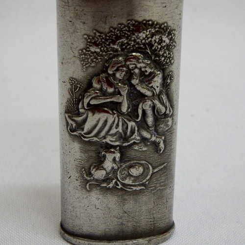 Pewter gas pocket lighter cover with man and woman in love - Marked : SKS ZINN 951