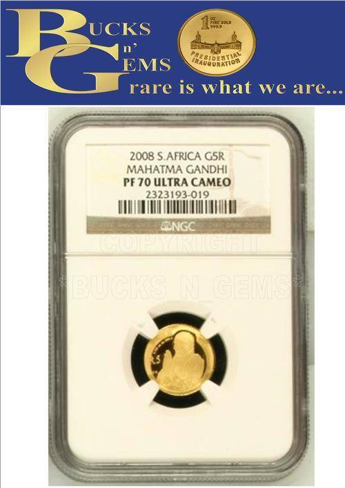 2008 G1R PROTEA 1/10TH OUNCE - GHANDI - PF70 ULTRA CAMEO - NGC GRADED