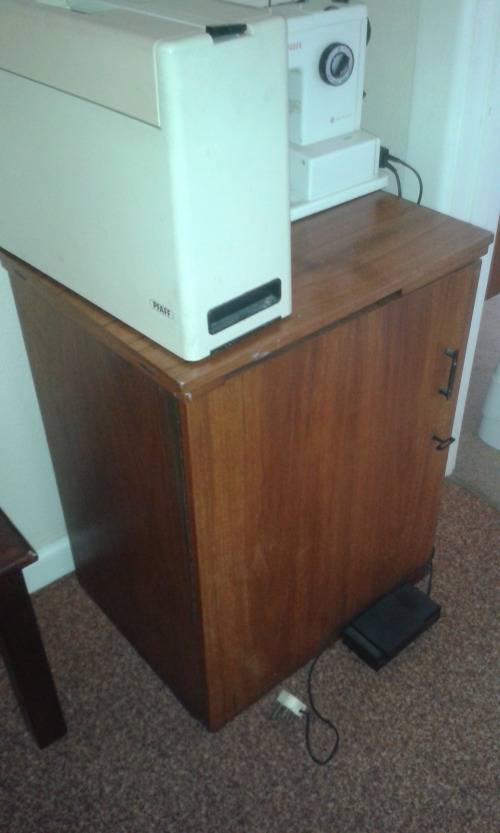 This machine was serviced a few years ago approx. 2010, I have used it once. Hardly been used. Bought in the mid 1970s. Light bulb works. I had a manual printed and put into a file. It has a cover/box as per photo and a wooden cupboard into which it fits and can be stored. The switch on the right hand side is missing, I think it may be the on/off switch. Collection in Parsons Hill to be paid for and arranged by the buyer, I will fit in with your arrangements.