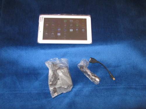 WI- FI, BLUETOOTH and GPS BATTERY UP TO FOUR HOURS WORKING. A/C ADAPTER, USB CABLE AND OTG CABLE INCLUDED