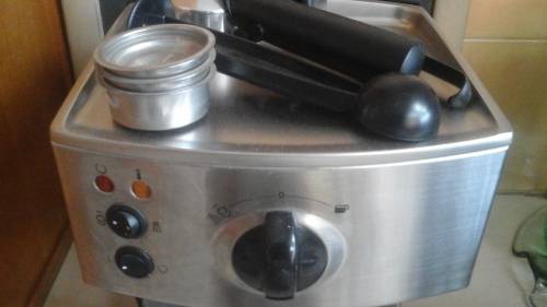 IT IS BASICALLY RECTANGULAR AND BLACK AND SILVER IN COLOR. IT HAS A STANDARD THREE PRONG PLUG AND HAS ALL ITS FITTINGS.
