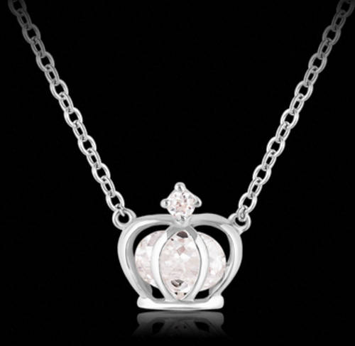***PHENOMENAL!! CROWN WHITE GOLD PLATED SIMULATED DIAMOND NECKLACE PENDANT***