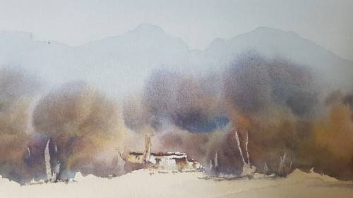 The watercolour of Stellenbosch is in excellent condition. Edges a bit faded from previous mount, just needs to be reframed in the modern frame it deserves to make it look amazing.