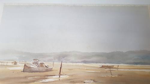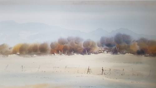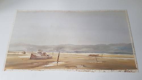 What an unusual item. Large watercolour signed by listed professional artist Phil Cloete of Autumn Trees, Stellenbosch. On the reverse is another original watercolour by the same artist of Knysna Lagoon at low tide, the reverse being unsigned. Unframed.