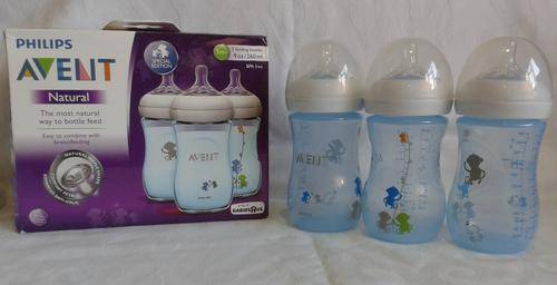 Philips AVENT 260ml (9 Oz) BPA-Free Natural Bottles 3-Pack - Blue Monkeys SPECIAL EDITION IMPORTED