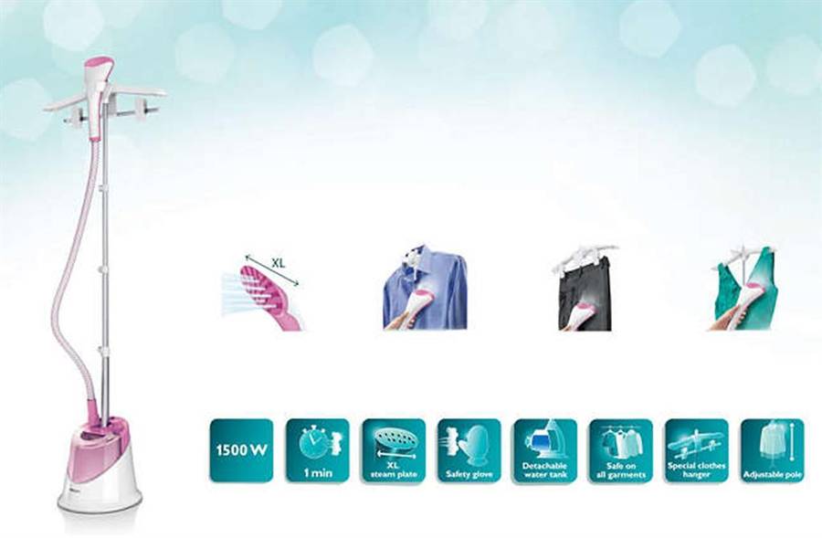With powerful continuous steam. The new Philips daily touch garment steamer is designed for easy crease removal every day. Just hang your clothes in the integrated hanger and see how quickly steam releases the creases while going over with the steamer head.