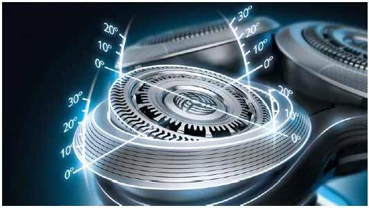 The new fully flexible 8X directional heads maximize facial adaptability requiring less effort in every stroke. Its independent movements allow to catch 20% more hairs for a clean shave in less strokes.