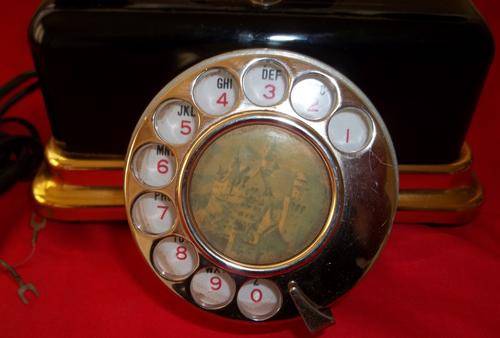 VINTAGE PHONE HAS BEEN HANDLED BUT NOT DAMAGED. DAIL STILL TURNS. GREAT FOR AN ORNAMENT.