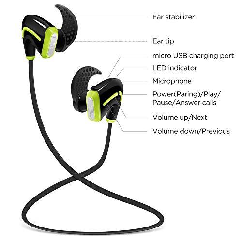 Photive Bluetooth 4.0 Wireless Sports Headphones with Built-in Microphone
