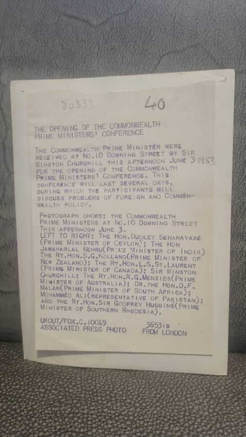 Original glossy photograph. 20.5 cm x 15 cm. Very good condition. Slight scuff and crease top right not affecting group portrait. Tape mark at bottom not affecting group portrait. Lengthy raised label at back with full details and Associated Press stamp underneath. Seller Inventory # 80333