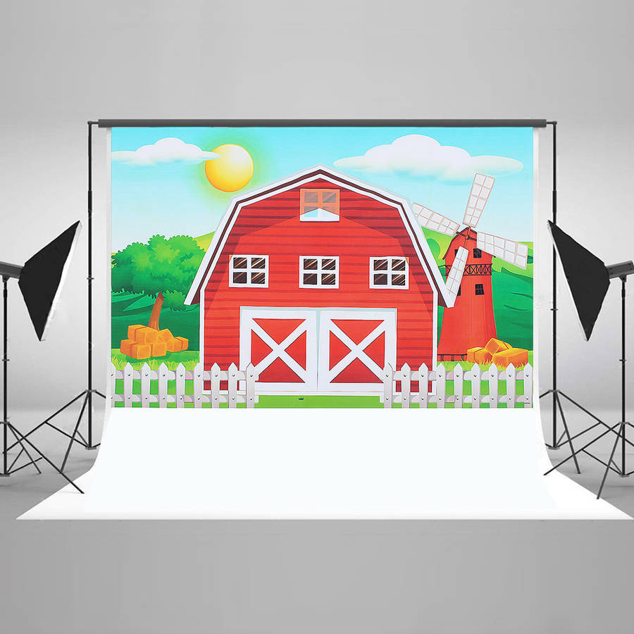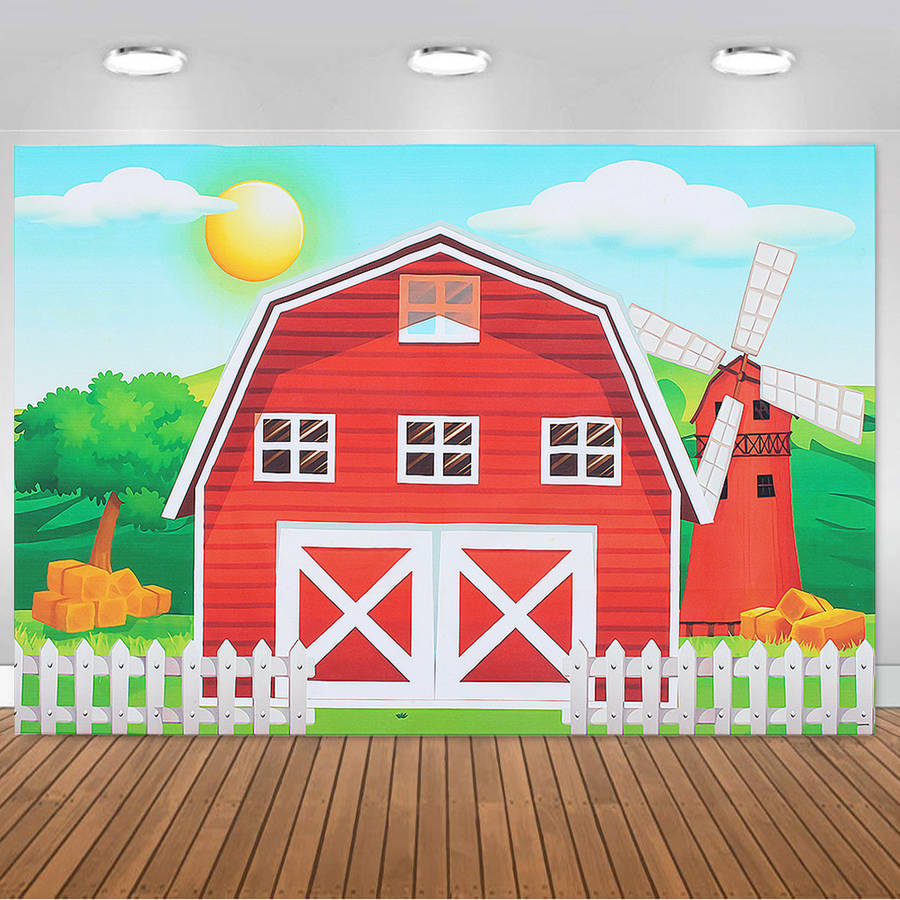Product | Photography Backgrounds Photo Studio Props Cartoon Red Farm Animals Birthday Party Backdrop (Option: SIZE. L) |
