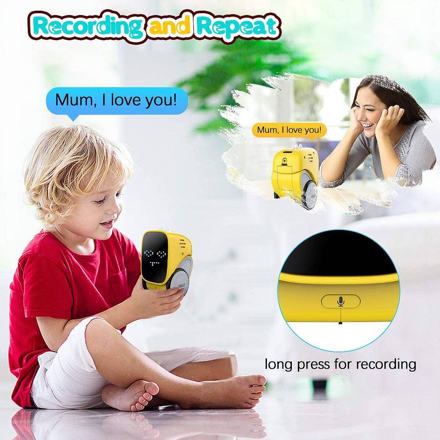 Record sound and play -Smart interactive robot can record and play by sound. Parents can leave messages for their children to remind them of matters needing attention or heartfelt blessings. Parents can continue to interact with their children and even surprise their children, leaving unforgettable moments. This smart robot is the best birthday gift for 3 5 6 10 year old kid girl boy.