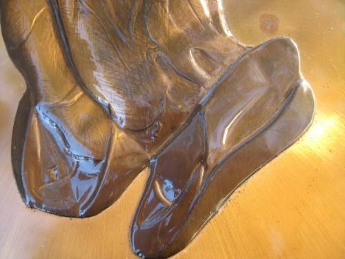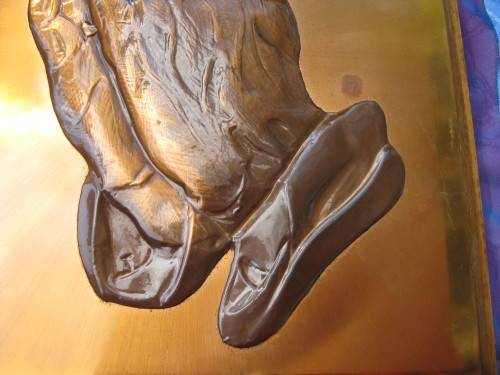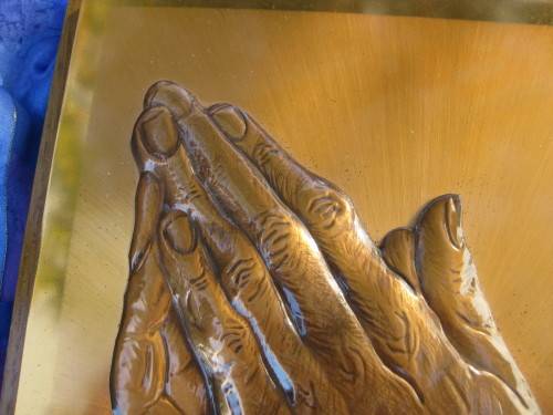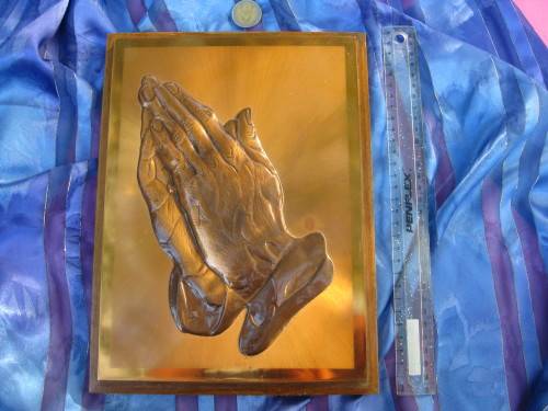 Picture of praying hands in pure copper.