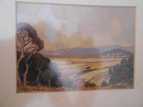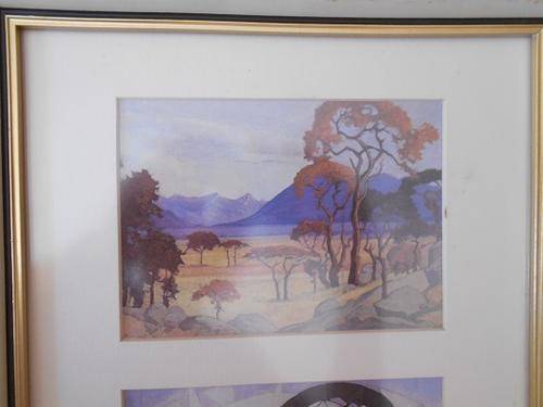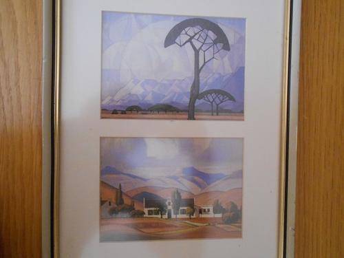 Cllection of Pierneef postcards, framed behind non-reflective glass. The postcards are as new, but the frame is a little bumped and chipped in places but does not really detract from the artwork. Approx 53 x 24 cm from outer edges of frame. Difficult to photograph because of the glass. Colours are deep and rich, not faded at all.