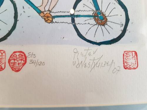 Etching is 15 x 11 cm. Signed and hand numbered with full set of stamps. Excellent condition.