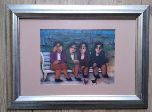 The size of the framed artwork is 52cm x 38cm and the actual print size is 26,5cm x 19,5cm. The print is of a painting done in 1996.