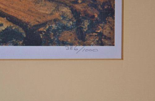 Numbered 386 of 1000 the print is in excellent condition. The cardboard surround needs to be replaced and it needs framing. Print measures 53cm by 37cm excluding cardboard frame. A nice item for those of us that can't afford to hang a Wenning painting on our walls.