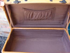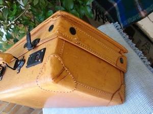 Measurements 37cm x 20xm x 14cm. This stunning little pig skin suitcase has been very well made. One lock is broken. Can't understand why they have put on such poor quality locks. Easily restored if you know how.