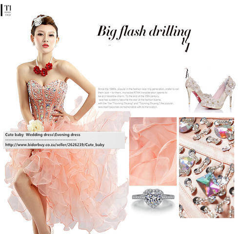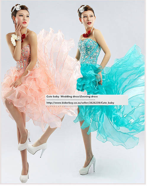Pink, blue-green diamond strapless short Party Ball Evening Pageant Dresses
