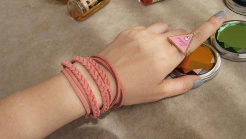 PINK FASHION TRIANGLE RHINESTONE RING, SIZE: FREE