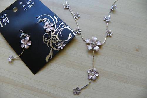 PINK FLOWER DETAIL NECKLACE & EARRING SET