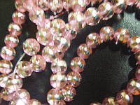 Pink Glass Rounds With Silver Stripe , 8mm - Pack of 20.