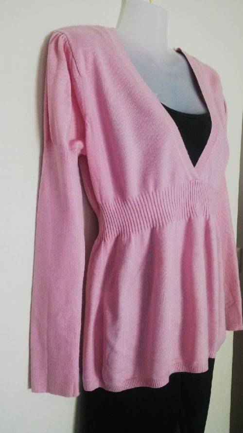Pink v neck low cut sweater, elasticated under bust by Truworths in Very good condition