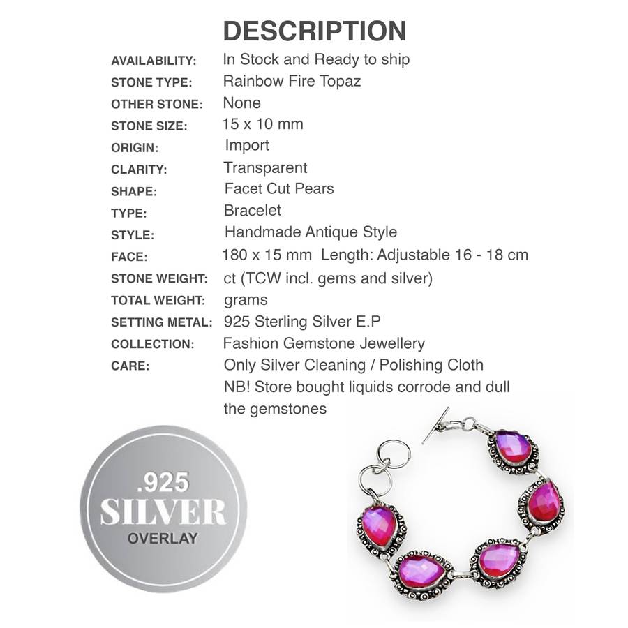 This exquisite bracelet is handcrafted with Pink Mystic Fire Topaz gemstones in genuine 925 sterling silver over a jewellers metal core . The gemstones features mesmerizing pink tones, perfect for day or evening wear.