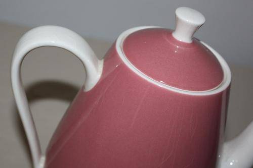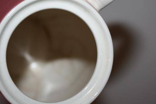 Pink Ceramic Tea Pot, height 18cm. Has crazing and the inside is stained and looks like cracks,as per pictures . Postage R40.00
