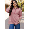 Stay cozy with the premium waffle fabric.Enjoy the comfort of the loose-fit and long sleeves.Effortlessly chic with a collar and half-button design.Versatile design for pairing with different bottoms. long sleeve tops elevate your casual style effortlessly.