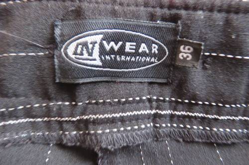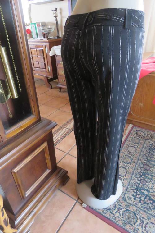 Black and white , med. rise pinstripe pants by "INWEAR" in size 36/12 with belt loops. In vertical stripes.No pockets.In polyester/rayon stretch fabric.Button decoration at back. As new