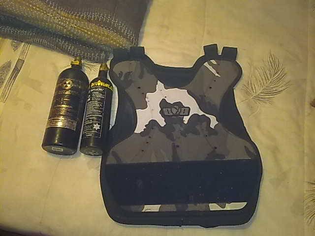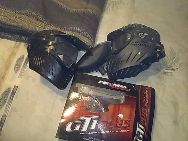 In total there is 1 Marker 2 Barrels 1 Hopper 1 Camo Protection 2 co2 Bottles 2 Masks 1 Bag of Diablo Paintballs In Total 10 Items