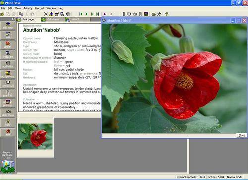 Pictures can be displayed in sequence as a slide show. For each image shown, a click of the mouse will bring up the main data record for that plant.