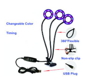 The 3 Arm LED grow lights have a USB connector which makes it convenient to connect in your office or home.