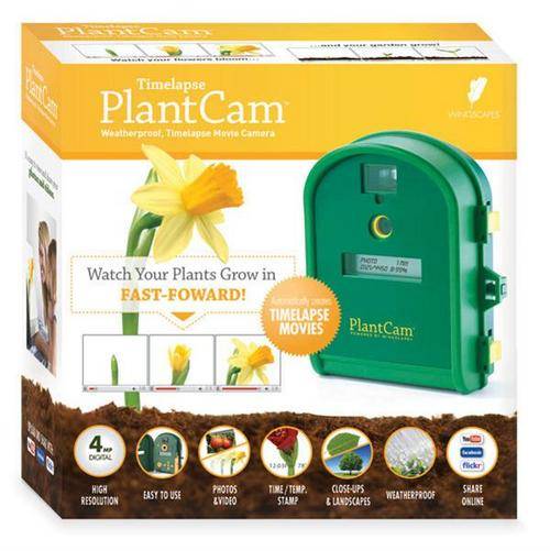 Watch your plants grow in fast-forward with the new Timelapse PlantCam garden camera. The PlantCam is rugged and weatherproof, and automatically takes photos and videos at set time intervals. It then stitches the photos together to create a video showing in minutes or seconds what usually can't be seen with the naked eye. The result is a seamless movie of your plants growing!