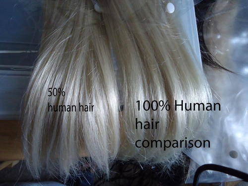 Platinum silver blonde clip in hair extensions 10 pieces set (each piece is 10 cm wide with 2 clips on) 18" 45cm long 50% keratin fiber, 50% human hair
