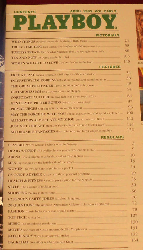 PLAYBOY April 1995 (magazine) South African issue (Bo Derek)